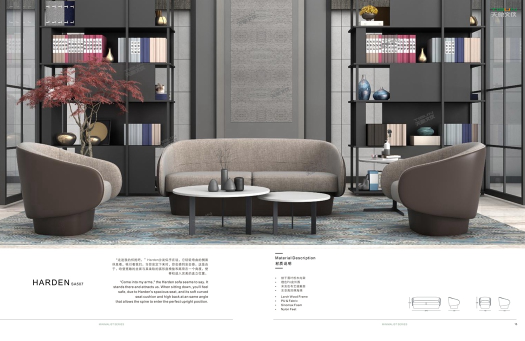 高級的辦公沙發在設計中運用真皮材質及考究的造型,體現主人對工作及生活的至高追求,同時凸顯辦公空間的高雅品質。