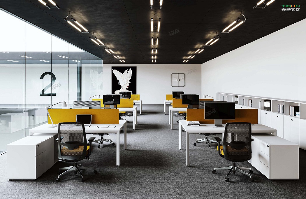 境由心造,思想領域超越于空間,員工桌簡約的設計展現了現代都市感,真心的設計,帶著一種生活的準確度,精確的敲擊,在工作與生活中完美呈現。這種輕松、和諧、明快、環境趨向人格化,帥氣十足,專業可靠。