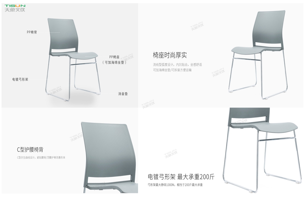 The training chair that can be moved and combined at will, the line is elegant and beautiful, the design is natural and unrestrained and fashionable, from colour, design, down to the mechanism of the chair, can provide efficient conference communication for you, more accord with the need of modern enterprise development.
